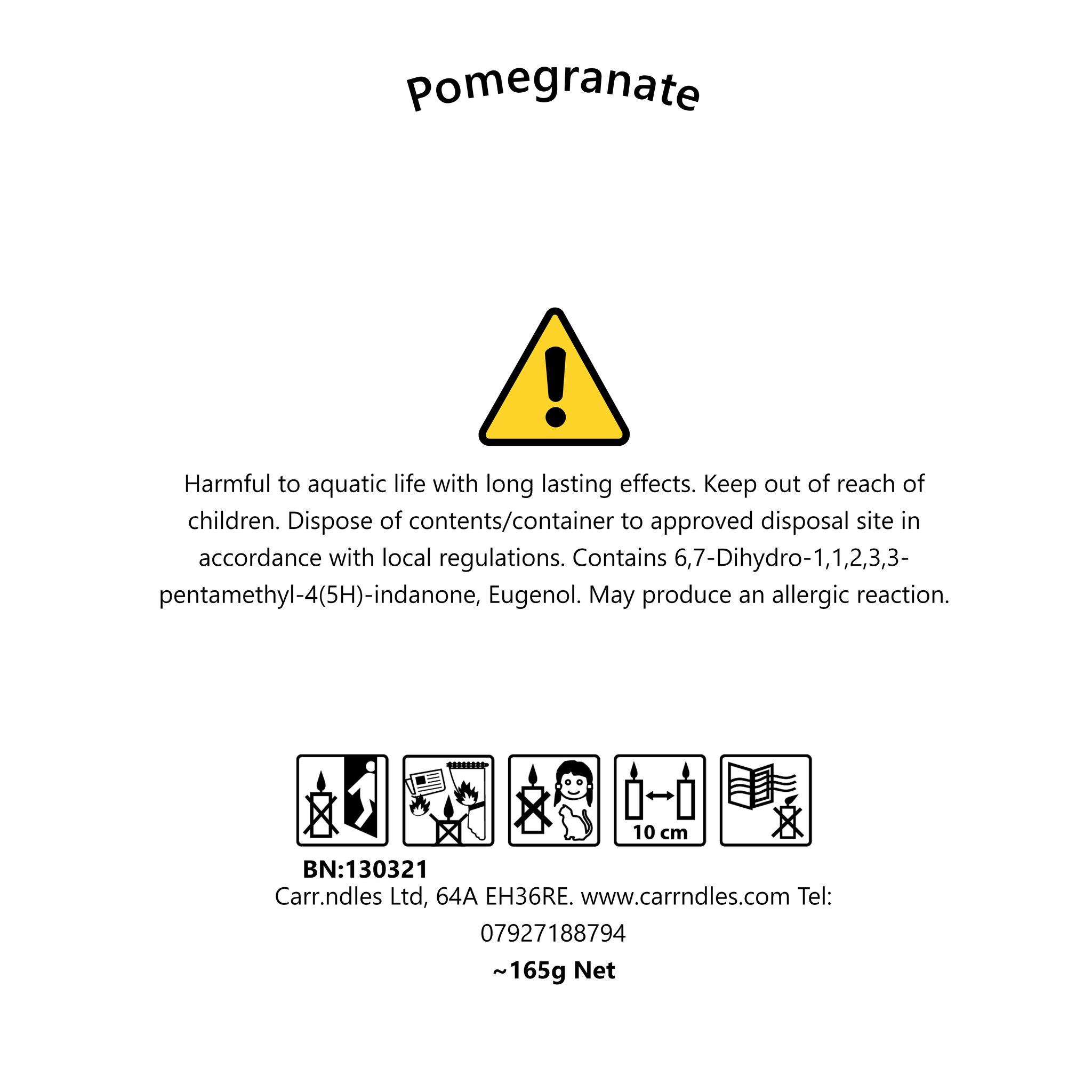 For all our candles we use a Rapeseed & Coconut natural wax blend. This wax is made from rapeseed oil and coconut oil and nothing else. It is completely free from paraffin, soy, palm, beeswax and synthetic additives. The pomegranate fragranced wax is presented in a 20cl Matt White candle jar and fully biodegradable box. Approx burn time 26+ hours