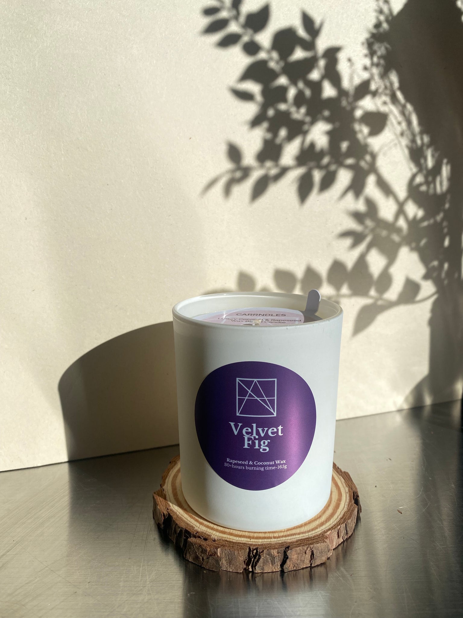 For all our candles we use a Rapeseed & Coconut natural wax blend. This wax is made from rapeseed oil and coconut oil and nothing else. It is completely free from paraffin, soy, palm, beeswax and synthetic additives.This velvet fig fragranced wax is presented in a 20cl White Matt candle jar and fully biodegradable packaging. Approx burn time 26+ hours